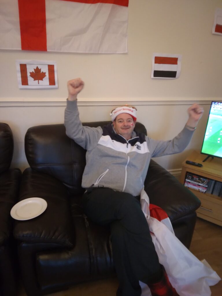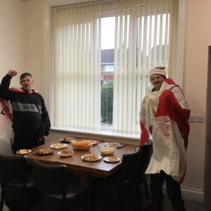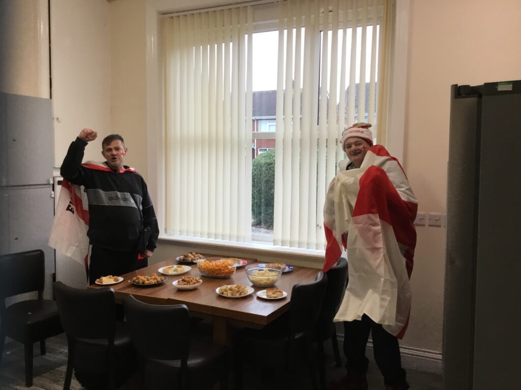 Residents at Glen Garth House enjoyed a buffet while cheering on England in their first World Cup 2022 match, decorating the service (and themselves!) in an abundance of England flags!