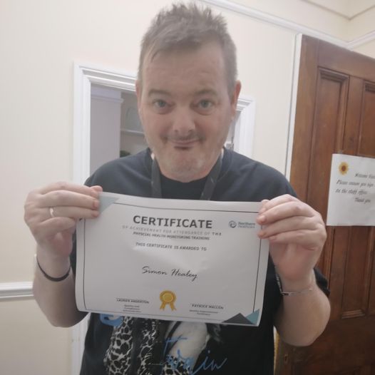 A person we support recently joined a training session from our Quality and Compliance Team and was happy to receive his certificate. He also said he would like to look at other courses around physical health too!