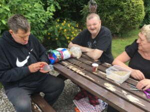 A person we support made fruit kebabs for everyone to enjoy in the sun.