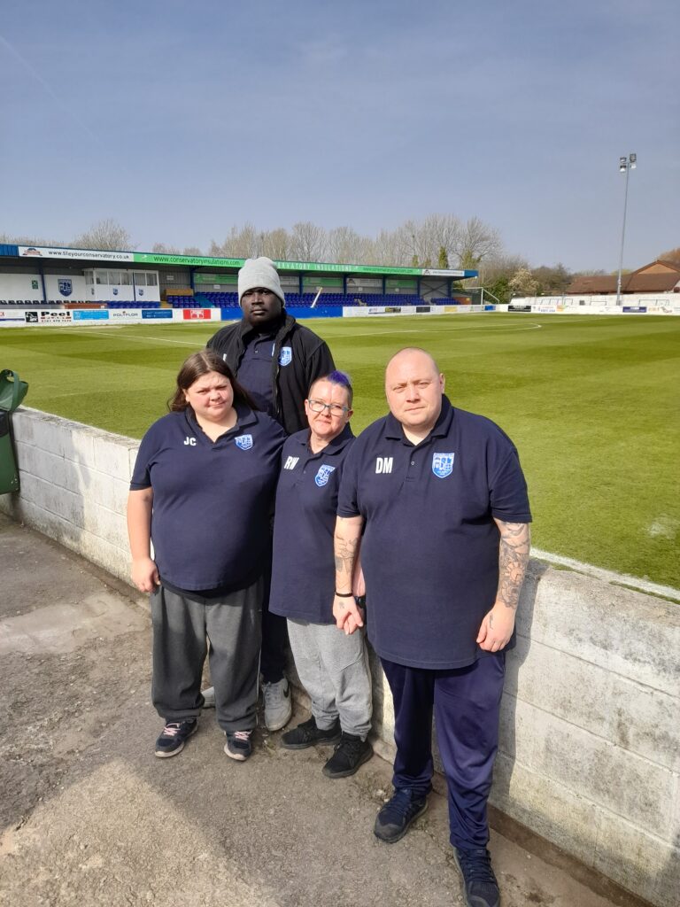 Some of our residents at Montgomery House have a keen interest in football and volunteer at Radcliffe FC twice weekly. They help to maintain the grounds and complete maintenance before and after the games to ensure the environment remains clean and safe.