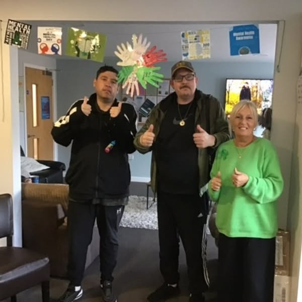 Support workers Paula and Olivia supported residents in brightening up Montgomery House for Mental Health Awareness Week, creating a positivity board filled with encouraging quotes and a coping strategy board where staff and residents wrote down tips for coping when they feel sad.