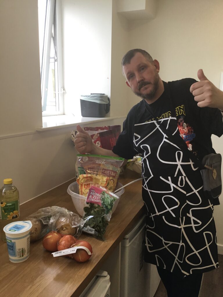 Our resident decided he wanted to make homecooked onion bhajis, so together they went to the local supermarket to get all the items they needed before preparing the dish. Our resident then shared the finished onion bhajis with fellow residents and they were enjoyed by all!