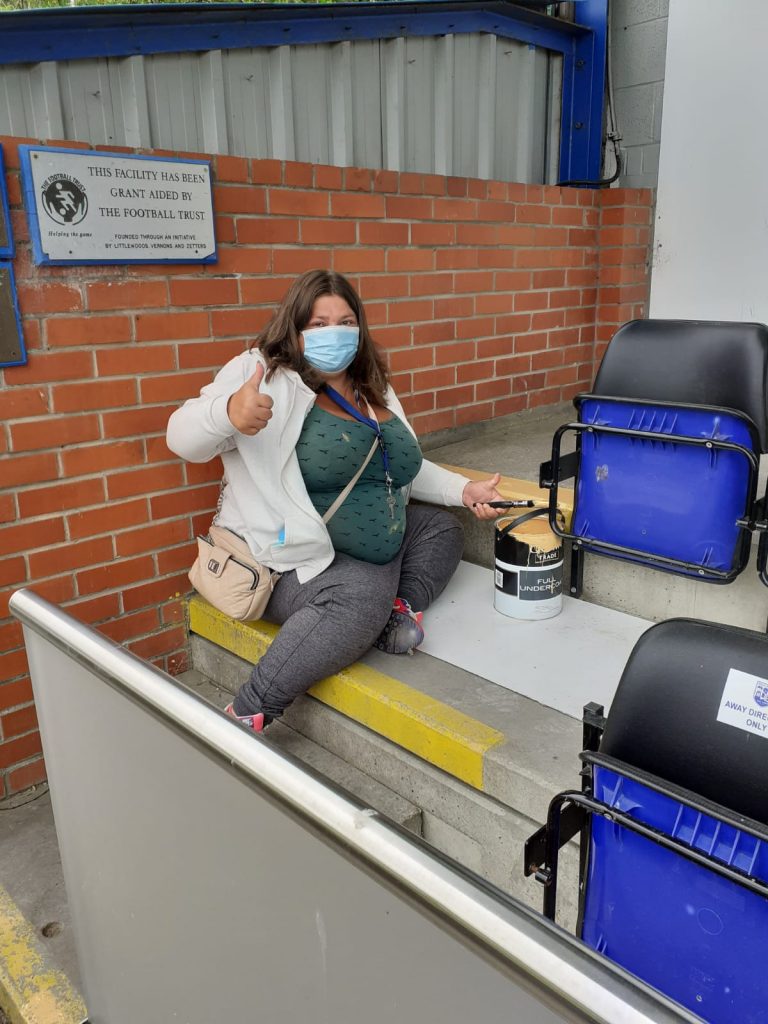 A very welcome change of scenery for two of our residents who were very happy to be back volunteering at Radcliffe Borough Football Club. Our residents wore PPE whilst giving the club a fresh lick of paint ready for receiving new visitors when it is safe to do so.