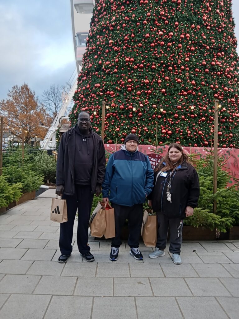 Residents at Montgomery House, our supported living service in Radcliffe, took the opportunity to get ahead with their Christmas shopping. They took a trip to Cheshire Oaks with our OTSW, Debra, to look at the shops and decorations.