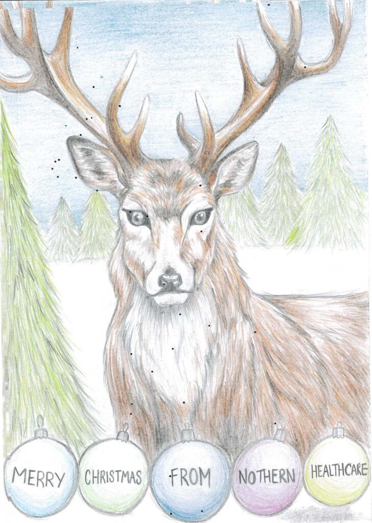 Our runner-up was Support Worker, Tia Reid, from Amy Johnson House in Hull who designed a beautiful freehand reindeer.