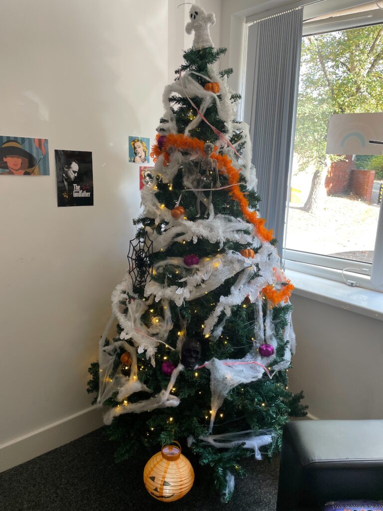 In preparation for Halloween the team and residents from Grainger House repurposed their Christmas Tree to create a Halloween Tree – a great idea to add some spooky sparkle!