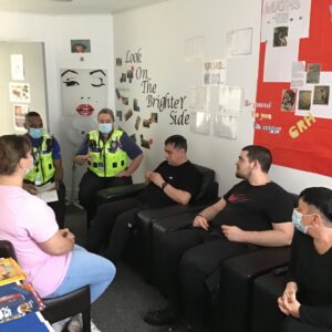 The local PCSO visited Grainger House last week – everyone enjoyed tea and biscuits while the PCSO discussed safety, the local area, and how to report any concerns.