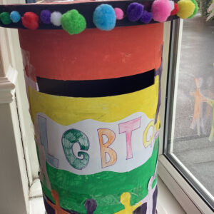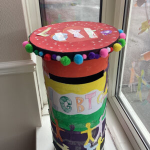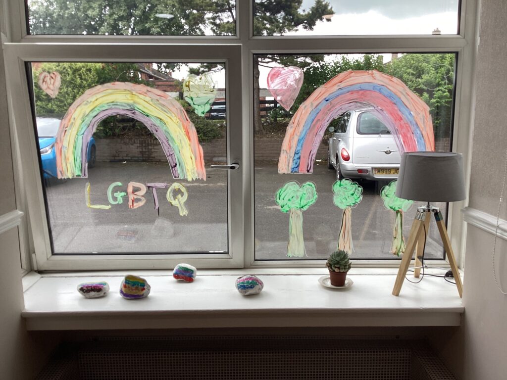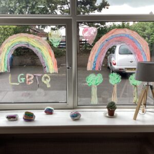 Our Kirk House residents created some window displays and redecorated their PROUD post box in aid of Pride month!