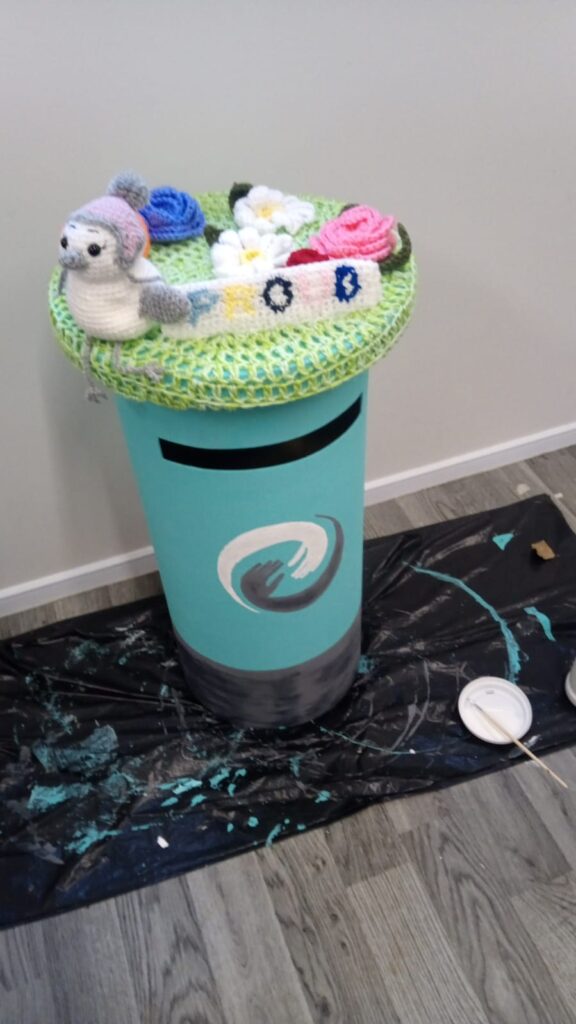 Mary Seacole House have done an amazing job decorating their Proud Mailbox! The crochet topper has been kindly donated by Sam’s Stitches.