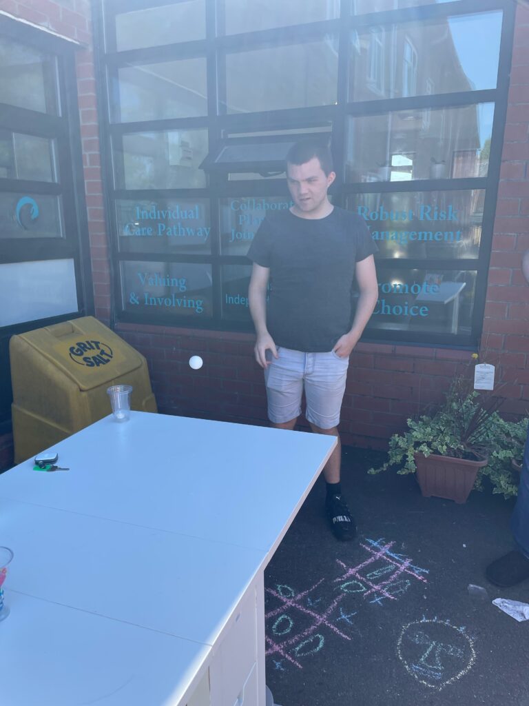 Our residents at Mary Seacole House have been enjoying playing a twist on a classic game in the form of Sweet and Juice Pong!