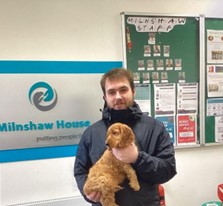 Residents and staff at Milnshaw House enjoyed Animal Therapy thanks to our Clinical Development Director, Dawn, and her puppy, Archie!