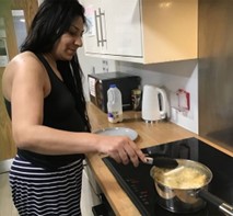 One of our Milnshaw House residents cooking up a storm in the kitchen, enjoying their 1:1 session with TL Chloe, practising for Eid next week!