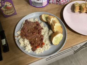 Milnshaw House residents enjoyed a delicious New Year’s Day meal: chilli con carne with garlic bread, followed by a cheese board and apple pie!
