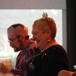 Montgomery House residents enjoyed their Christmas meal – there were crackers, party hats and lots of delicious food! ![]()