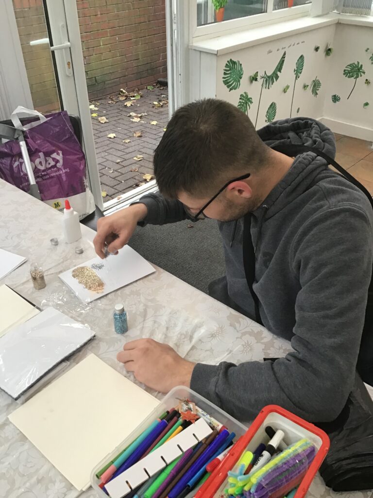Hyde Park House residents designed and decorated their own Christmas cards using pens, glitter, stickers and transfers. They sent these out to friends and family members who were delighted to receive them!