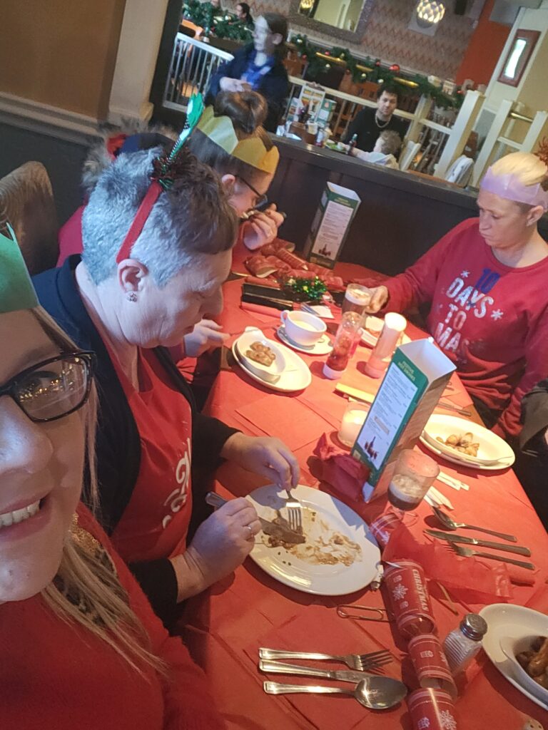 …Whilst throughout the month, residents and team members from our services all ventured out for their annual Christmas meals – the Christmas meal is a calendar highlight and is enjoyed by everyone!