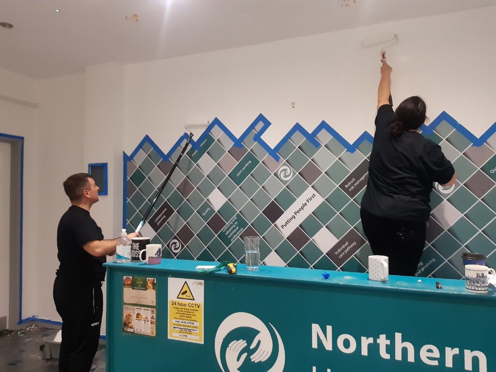 Northern Healthcare teamed up with residents and Encircle Housing Association to brighten up Merchants House. A fresh lick of paint was applied to the entrance, reception and the games room.
