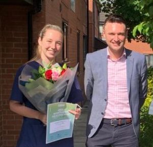 A new category for the Northern Healthcare Awards 2021! Sharing best practice across our services is vital to enhance our residents’ experiences and it enables us to learn from our colleagues. Sometimes it can be the small things that an individual team member has put into practice to support a resident and sometimes it’s grand ideas that impact the whole service for the better. Earlier this year Nicole was appointed ‘Physical Healthcare Champion’ at Grainger House. As well as excelling in her role as a Support Worker, Nicole works to encourage residents to access health care services and helps them to monitor and understand key factors relating to their health. Nicole was presented with her award by Jodie Langley, Service Manager. Sarah Jakeman team member said: “Nicole has supported both staff and residents at Grainger House with a positive and enthusiastic attitude. She has shown great teamwork and has proven that anything is possible even with a national lockdown! Nicole thought outside the box, this improved the support that we were able to provide for each resident, she has shown excellent initiative and set an example to other colleagues.” Well done Nicole!